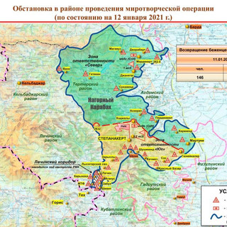 🇷🇺🇦🇿🇦🇲Map from the Ministry of Defense of the Russian Federation on 12/01 on peacekeeping activities in Artsakh. Lachin corridor and Shushakend are still included in the zone of the RF Ministry of Defense. The rest is unchanged.