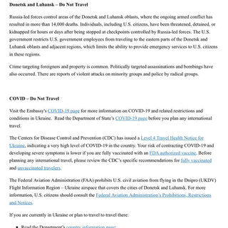 Donetsk and Luhansk - Do Not Travel